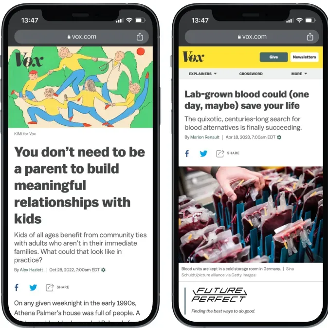 Vox’s staff of journalists and subject-matter experts research, report and produce articles, videos, and podcasts that make complex ideas accessible. Whether it’s politics, policy, culture, democracy, animal welfare, biodiversity, artificial intelligence, the climate crisis, or how to live a better life, we give context to what’s happening today.